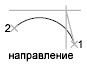 Дуга строится по касательной к заданному направлению. Здесь можно строить большие или меньшие дуги; по часовой стрелке или против нее. Дуга берет начало в точке (1) и заканчивается в точке (2). Направление определяется от начальной точки.