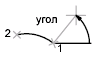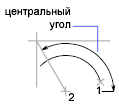 Дуга строится против часовой стрелки от начальной точки (1) к конечной точке (2); используется заданный центральный угол. Если угол имеет отрицательное значение, дуга строится по часовой стрелке.