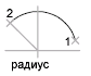 Строится меньшая дуга против часовой стрелки от начальной точки (1) к конечной точке (2). Если значение радиуса отрицательное, строится большая дуга.