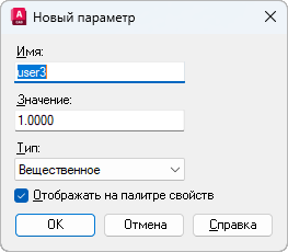 Определение типа нового параметра. В качестве типа параметра может быть выбрано вещественное число, расстояние, площадь, объем, угол или строка.