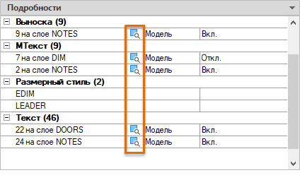 Выберите в дереве определение блока, которое необходимо просмотреть и найти в текущем чертеже.