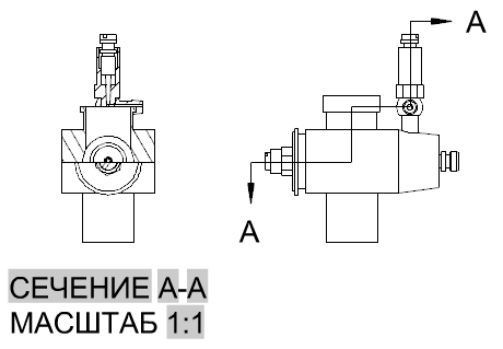 Щелкните в области чертежа, чтобы задать начальную точку линии сечения. В позиции курсора отображается стрелка конечного направления.