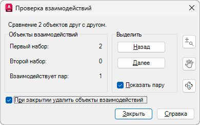 Выводит число взаимодействий между каждым набором объектов во время выполнения команды ВЗАИМОД.