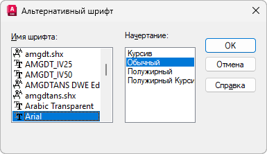 Местоположение файла альтернативного шрифта также можно задать с помощью системной переменной FONTALT.