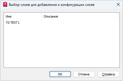 Отображает имя и описание слоев, которые не были добавлены в конфигурацию слоев. Выберите слои, которые требуется добавить, и нажмите кнопку "ОК".