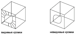 Управление видимостью каждой кромки 3D грани; это дает возможность адекватно моделировать объекты с отверстиями. Для того чтобы сделать кромку невидимой, перед указанием первой точки этой кромки необходимо ввести признак скрытая или просто с.