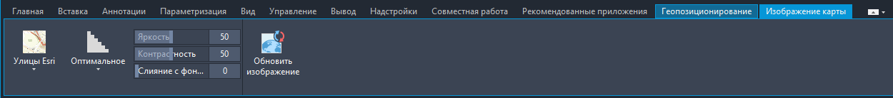 2. На панели "Свойства" измените параметры "Яркость", "Контрастность" и "Слияние с фоном" так, чтобы геометрия чертежа была четко видна на фоне изображения карты.