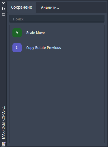 Список макросов команд, ранее сохраненных на вкладке «Аналитика».