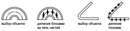 Создавать точки и вставлять символы (блоки) на объекте можно с равными интервалами.
