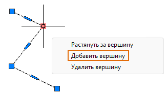 Вершина добавляется к полилинии, удлиняя ее от выбранной конечной ручки.