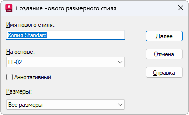 Присвоение размерному стилю нового имени.