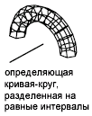 Сеть образуется вращением криволинейной траектории вокруг выбранной оси. Криволинейная траектория задает N-направление сети. Если выбран круг или замкнутая полилиния, то полученная сеть будет замкнута в направлении N.