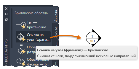 - Перетаскивание чертежей, блоков и штриховок из Центра управления. Если на палитру добавлен целый чертеж, то при перетаскивании его из палитры в графическую область он вставляется как блок.
