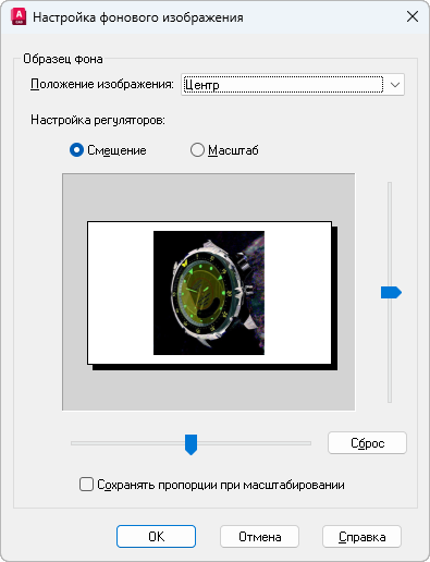 Управление опциями для фонового изображения, применяемыми к именованному виду в пространстве модели.