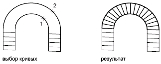 Команда П-СОЕД создает сеть, представляющую поверхность соединения между двумя отрезками или кривыми.