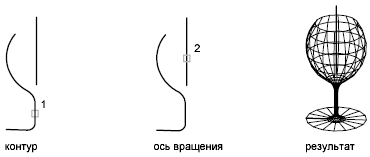 Команда П-ВРАЩ создает сеть, приблизительно соответствующую поверхности вращения, путем вращения профиля относительно указанной оси. Профиль может состоять из отрезков, окружностей, дуг, эллипсов, эллиптических дуг, полилиний, сплайнов, замкнутых полилиний, многоугольников, замкнутых сплайнов и колец.