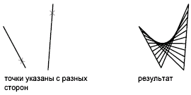 В случае разомкнутых кривых построение сети соединения определяется выбором местоположения заданных точек на кривых.