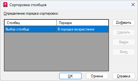 Устанавливает порядок сортировки столбцов. Раздел "Столбец" содержит имена столбцов из страницы "Уточнение данных".