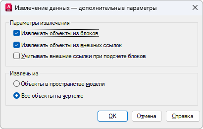 Включает все объекты в пространстве модели и пространстве листа на чертеже, включая информацию о чертеже. Включено по умолчанию.