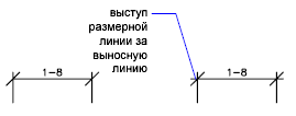 - Указывать расстояние, на которое размерная линия выходит за выносные линии, для окончаний размерных линий на строительных чертежах (с наклонными засечками).