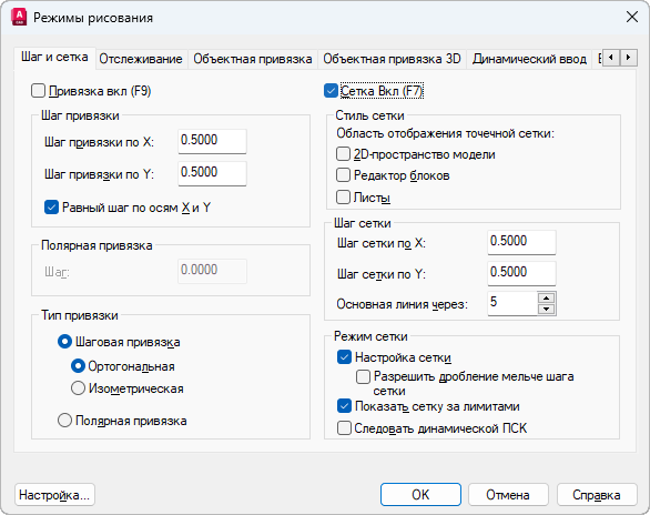 В диалоговом окне "Режимы рисования" измените необходимые параметры.