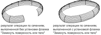 Замыкает или размыкает поверхность или тело. При использовании этого параметра поперечные сечения должны образовать тор, чтобы получаемая лофт-поверхность или тело образовали замкнутую трубу. LOFTPARAM (системная переменная)