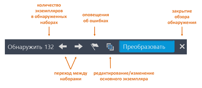 Эта панель содержит параметры и элементы управления, позволяющие перемещаться по наборам обнаруженных объектов и управлять ими.