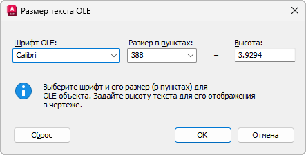 Диалоговое окно "Размер текста OLE"