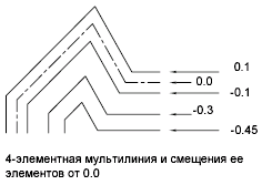 Отображает все элементы текущего стиля мультилинии. Для каждого элемента стиля определяется смещение от центра мультилинии, цвет и тип линии. Элементы отображаются в убывающем порядке значений смещений.