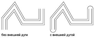 Отображает дугу между парами внутренних элементов. Если число элементов нечетно, центральный элемент не включается в соединение. Например, если мультилиния состоит из шести элементов, внутренние дуги соединяют 2-й элемент с 5-м, а 3-й элемент — с 4-м. Если мультилиния состоит из семи элементов, внутренние дуги соединяют 2-й элемент с 6-м, а 3-й элемент — с 5-м. Элемент 4 остается несоединенным.