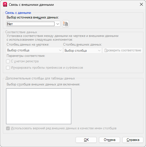 Отображает имена столбцов в том порядке, в котором они появляются в электронной таблице. Выбранные столбцы связаны с данными чертежа через механизм установления соответствия данных.
