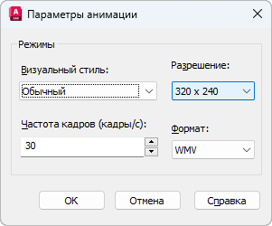Задает список форматов вывода анимации. Поддерживаемые форматы - AVI, MPG, WMV и MOV.
