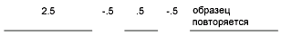 Описание образца представляет собой ряд чисел, разделенных запятыми. Положительными числами обозначаются длины штрихов, отрицательными — длины пробелов. Точки обозначаются нулями.