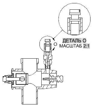 Щелкните, чтобы указать диаметр области, подлежащей увеличению. Идентификатор выносного элемента размещается в месте щелчка мыши, и в позиции курсора отображается образец выносного элемента.