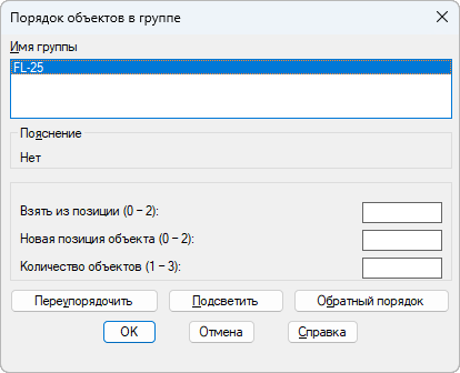 Изменение порядковых номеров объектов группы.