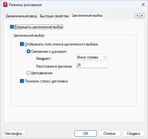 Управление включением элемента циклического перебора (системная переменная SELECTIONCYCLING).