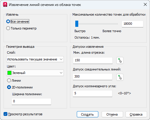 Извлечение линий сечения из диалогового окна облака точек
