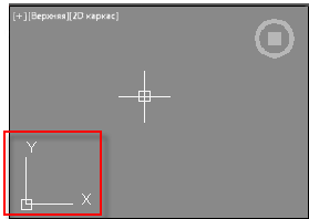 В области чертежа отображается значок, представляющий ось XY прямоугольной системы координат, которая называется пользовательской системой координат, или ПСК.