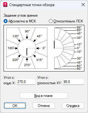 Задает направление взгляда относительно либо МСК, либо ПСК.