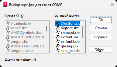 Это диалоговое окно открывается при открытии чертежа, в котором отсутствует файл шрифта. В данном окне можно выбрать файл шрифта для замены стиля.