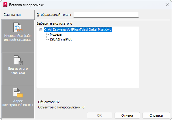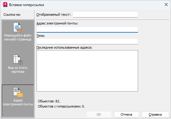 Вывод списка последних назначенных в чертеже гиперссылок.