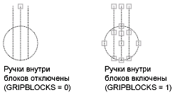 Управление отображением ручек внутри блоков. (системная переменная GRIPBLOCK)