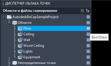 Справка по использованию Диспетчера облака точек для упорядочения проектов, областей и файлов сканирования облаков точек.