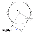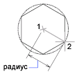 При указании радиуса при помощи устройства указания одновременно задаются и радиус, и угол поворота многоугольника. При вводе радиуса с клавиатуры нижняя сторона многоугольника строится в соответствии с текущим углом поворота шаговой привязки.