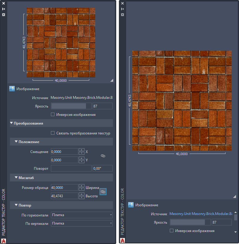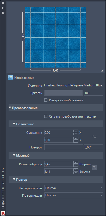 | Тип текстуры | Положение | Масштаб | Повторение |