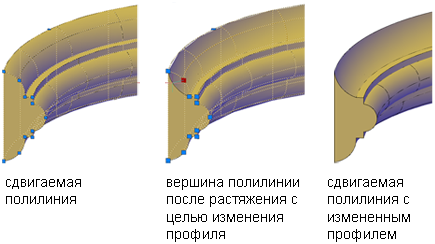 Перетаскивание по профилю ручки, выбранной нажатием левой кнопки мыши, позволяет вносить изменения только в плоскости кривой профиля.