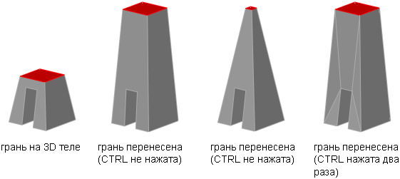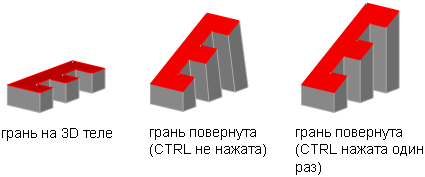 - Перенос грани. При однократном нажатии и отпускании клавиши CTRL во время перетаскивания грани с целью ее переноса положение этой грани изменяется в пределах контура, образуемого смежными гранями.