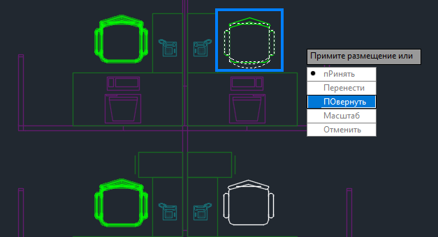 Выбрав существующее определение блока, можно скорректировать масштаб и угол поворота, чтобы задать принцип замены найденных экземпляров выбранным определением блока.