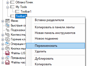 Будет создана новая панель инструментов (с именем "Панель1"), а в нижней части выбранной пользователем панели инструментов будет помещено всплывающее меню, ссылающееся на созданную панель инструментов.