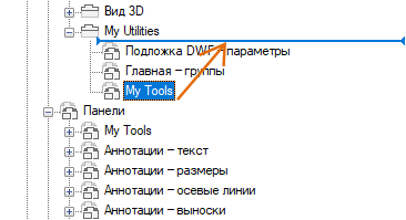 С помощью полосы-визуального индикатора расположите панель в желаемом месте на вкладке ленты.
